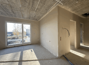 W przeważającej liczbie mieszkań zakończono tynki wewnętrzne, co znacząco przybliża nas do kolejnych etapów wykończeń. Dzięki temu wnętrza zaczynają nabierać właściwego kształtu i finalnej geometrii.