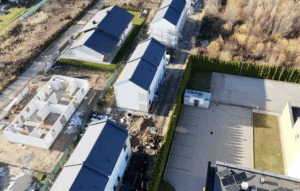 Równolegle prowadzimy roboty związane z wykonaniem sieci wodociągowej oraz kanalizacyjnej. Po ich zakończeniu przystąpimy do budowy kanalizacji deszczowej, która jest kluczowa dla komfortu przyszłych mieszkańców – tak, aby po intensywnych opadach teren osiedla pozostawał suchy, a chodzenie po kałużach nie stanowiło żadnego problemu.
