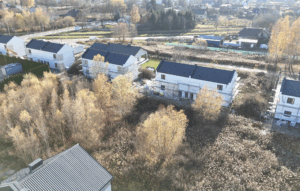 Wewnątrz budynków wykonano już instalację elektryczną oraz rozprowadzono kanały pod system rekuperacji. Dodatkowo, do większości lokali wprowadzono już hydraulików, którzy rozpoczęli prace nad instalacjami wodno-kanalizacyjnymi.